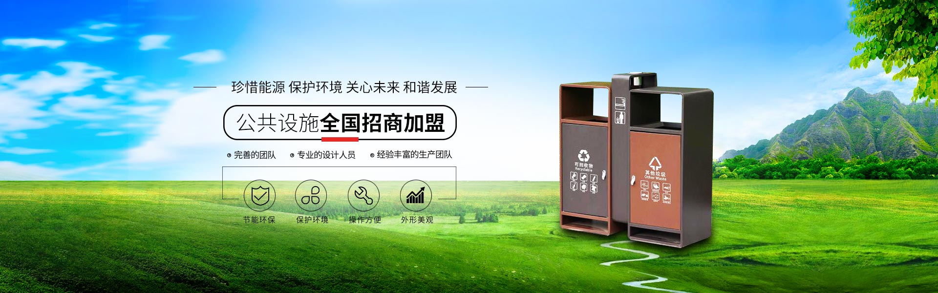 主營產(chǎn)品:塑料垃圾桶,分類果皮箱,戶外公園椅,保安崗亭,垃圾房